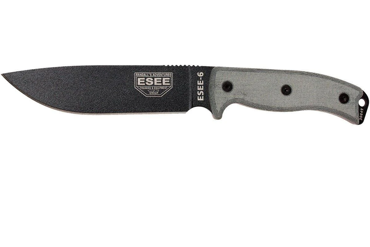 ESEE Model 6 Schwarze Klinge, Grauer Handgriff 6P Inkl. Braune Scheide + Gürtelclip