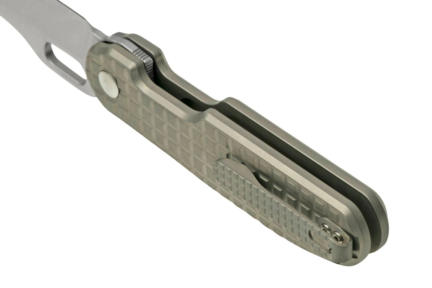 Das Kizer Cormorant Button Lock Ki4562A4 ist ein praktisches EDC-Messer mit einem speziellen Design. Das Messer wurde von Yeu Dong entworfen. Der Griff ist aus leichtem und extrem starkem Titan gefertigt. Dank des quadratischen Musters bietet der Griff einen guten Halt. Der Taschenclip befindet sich standardmäßig auf der rechten Seite des Griffs. Es ist jedoch möglich, den Taschenclip selbst auf der anderen Seite des Griffs zu befestigen.