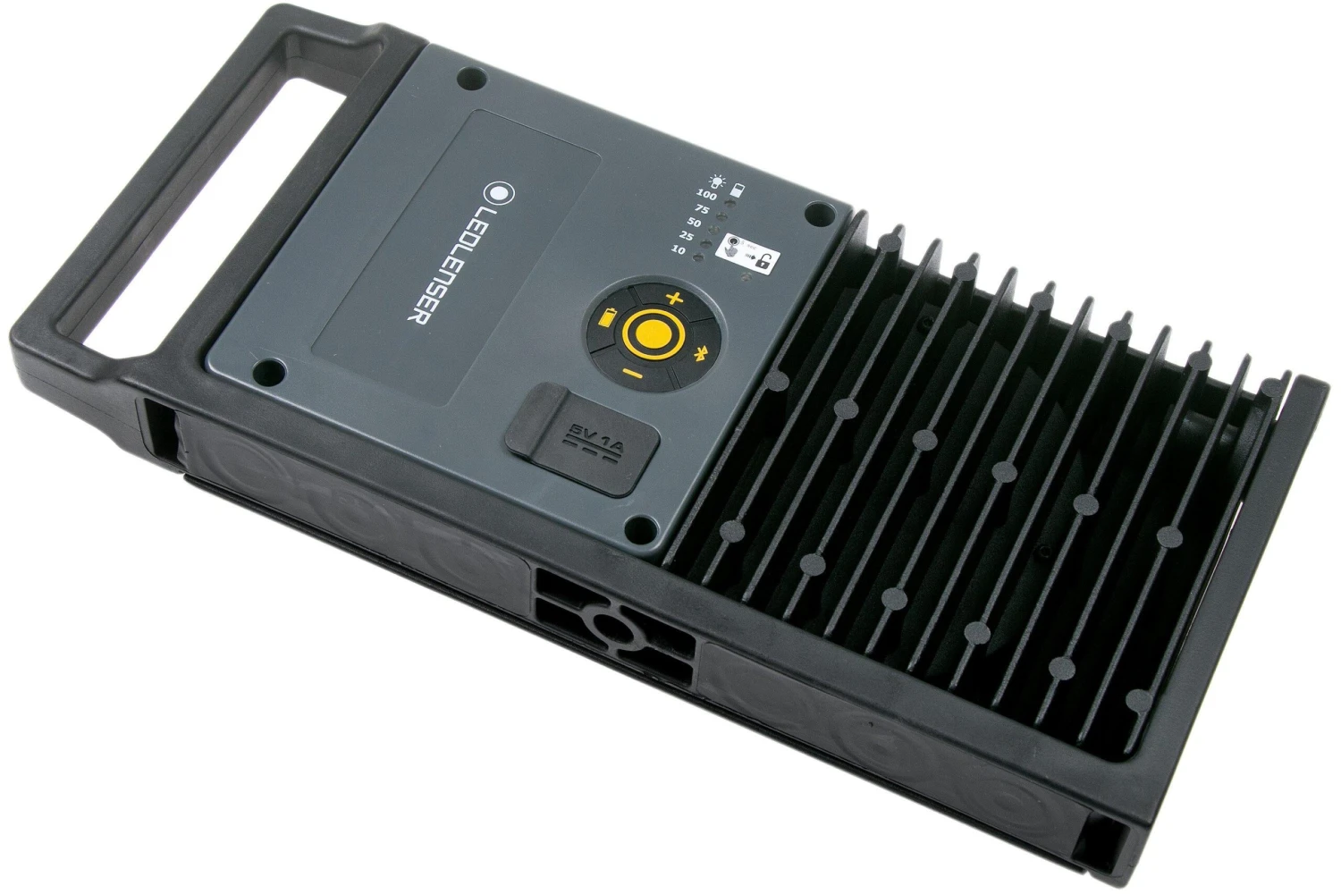 Die Ledlenser iF8R ist eine praktische Arbeitslampe, die über eine App bedient werden kann. Verbinde Dein Handy via Bluetooth mit der iF8R und schon hast Du Zugriff auf die verschiedenen Lichtmodi. Dieser starke Baustrahler hat einen Lichtstrahl von ganzen 4500 Lumen. Außerdem gibt es eine Powerbank-Funktion, mit der Du andere Geräte über den USB-Ausgang aufladen kannst. Ideal für die Werkstatt, auf dem Bau oder Arbeiten in und um das Haus herum. Die Lampe hat einen ausklappbaren Fuß und ist an einer Seite magnetisch.