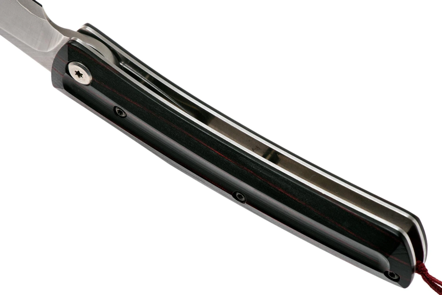 Das Mcusta MC-191C Friction Folder ist ein sehr schönes Herrenmesser. Es öffnet sich mit dem vorderen Flipper, ein subtiles Gleitgelenk hält die Klinge offen. Das bedeutet, dass es keine echte Verriegelung gibt. Deshalb darfst Du dieses Taschenmesser an vielen Orten der Welt legal bei Dir tragen.