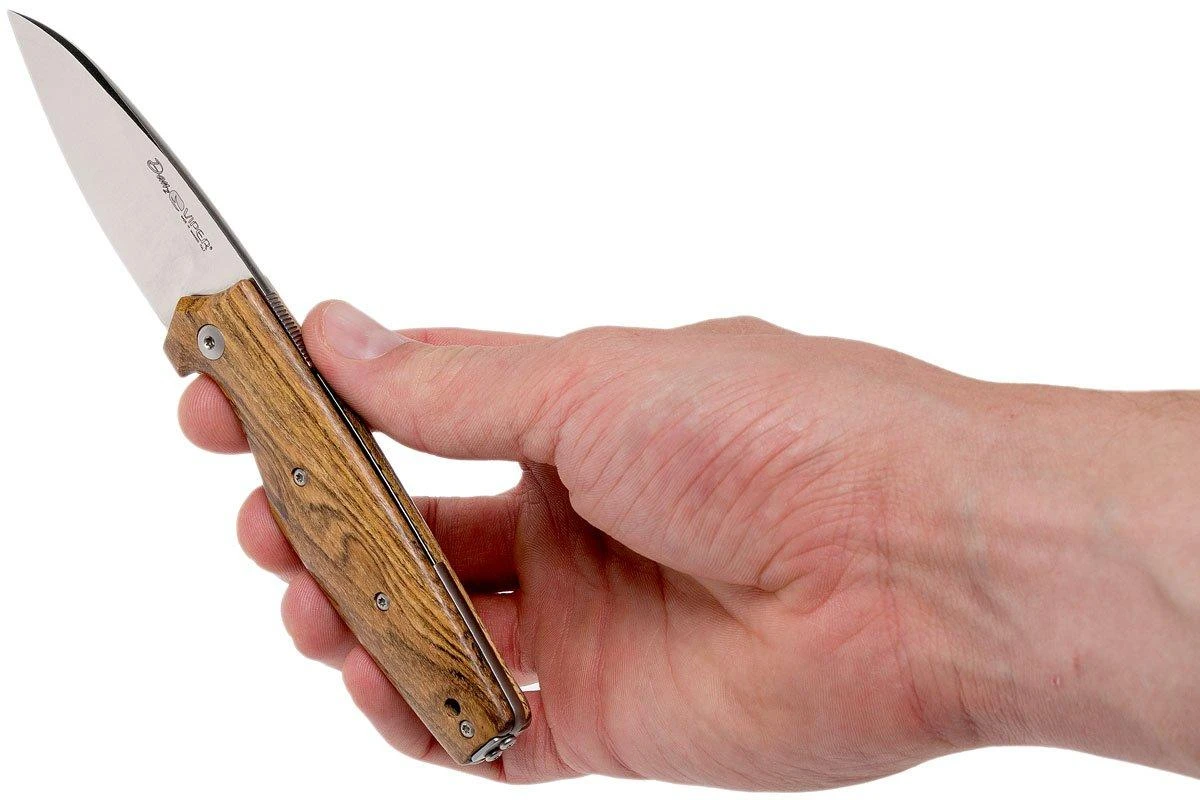 Das Viper Dan 2 ist ein stilvolles „friction folder“ mit einem feinen, tief sitzenden Taschenclip. Ein Friction Folder ist ein Taschenmesser ohne echte Verriegelung. Allerdings ist an der Klinge ein Widerstand zu spüren, so dass sie nicht einfach zuschnappt. Du kannst das Messer mithilfe des Flippers recht einfach öffnen. Im geöffneten Zustand sitzt der Flipper sauber auf der Rückseite der Klinge, genau dort, wo Du Deinen Daumen halten würdest. Durch den Druck Deines Daumes nach unten, bleibt das Messer während des Gebrauchs immer offen. Friction folders sind beliebt, weil sie unter anderem im Vereinigten Königreich und in Deutschland legal mitgeführt werden dürfen. Außerdem ist es natürlich ein schöner Mechanismus, der auch von vielen Menschen geschätzt wird.